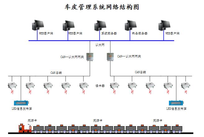 本系統上位機軟件采用B/S構架,可以實現多WEB客戶端應用。硬件采用CAN總線和以太網作為傳輸層進行通信,現場CAN總線連接的所有讀卡器到CAN-以太網網關,然后接入上位機所在的工業以太網。網絡結構見下圖: